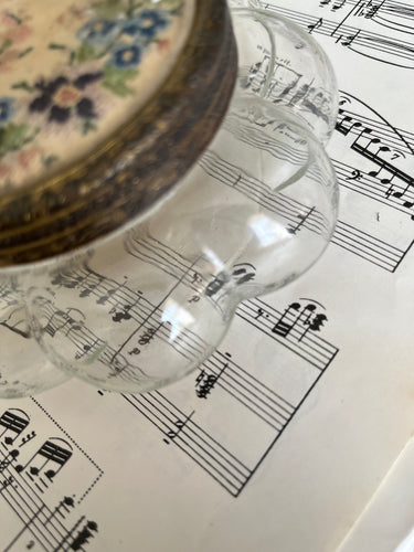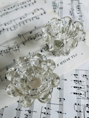 Vintage glass dressing table pot with beautiful flower shaped glass base.