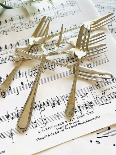 Set of 6 vintage silver plated cake forks and matching cake server (some slight age related wear to forks)
