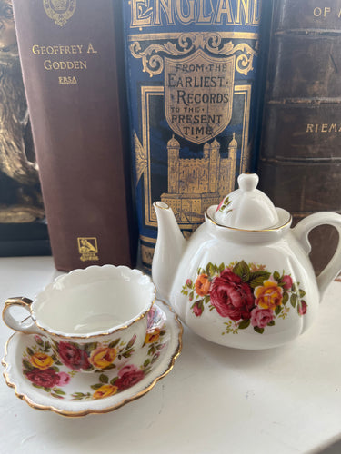 Miniature vintage teapot and teacup and saucer set (2 pieces)