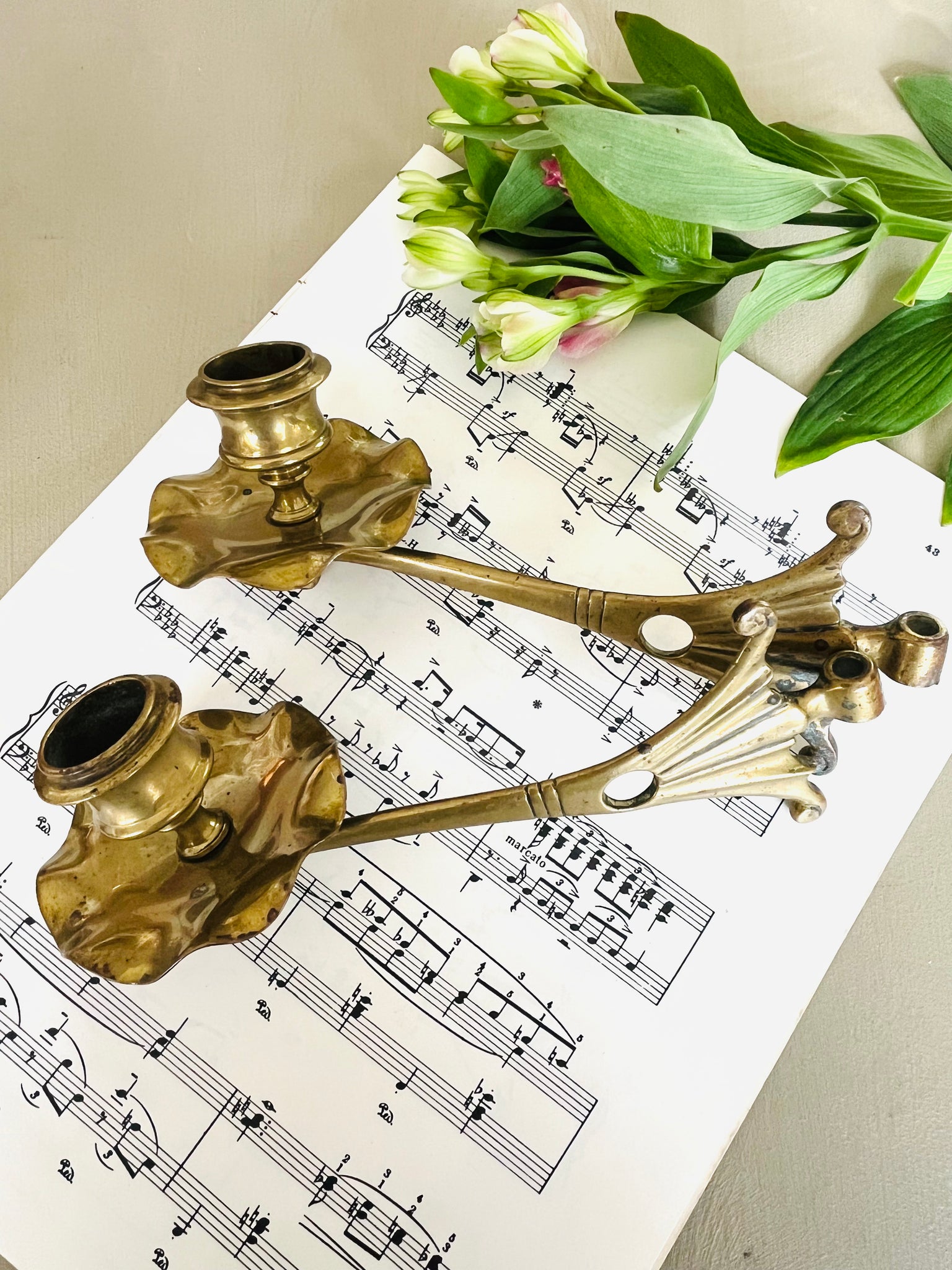 Antique brass wall mounted candle holders