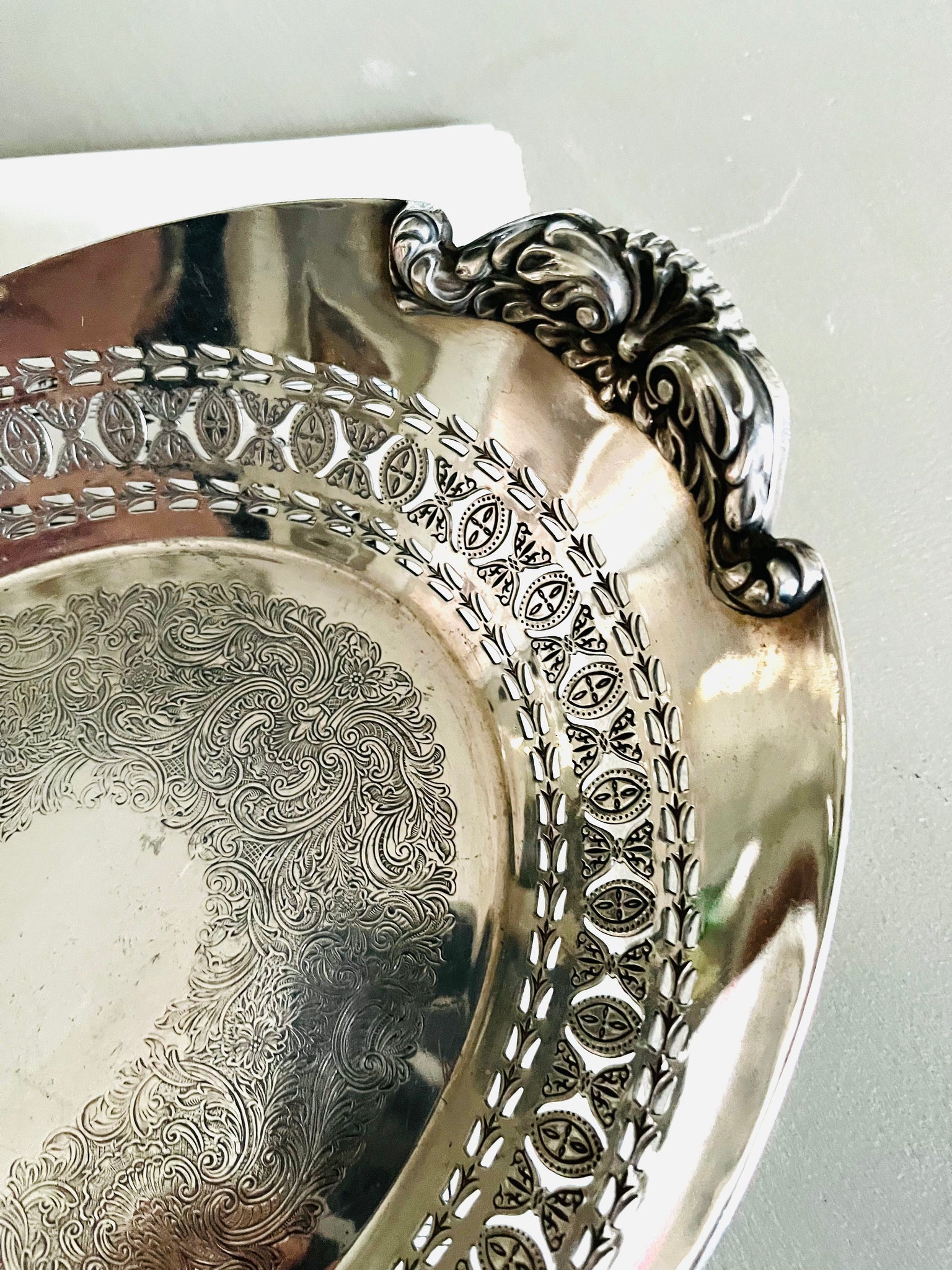 Beautiful antique silver plated engraved decorative serving dish