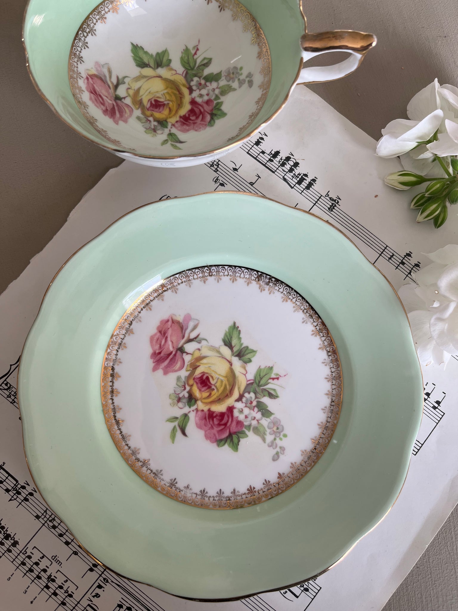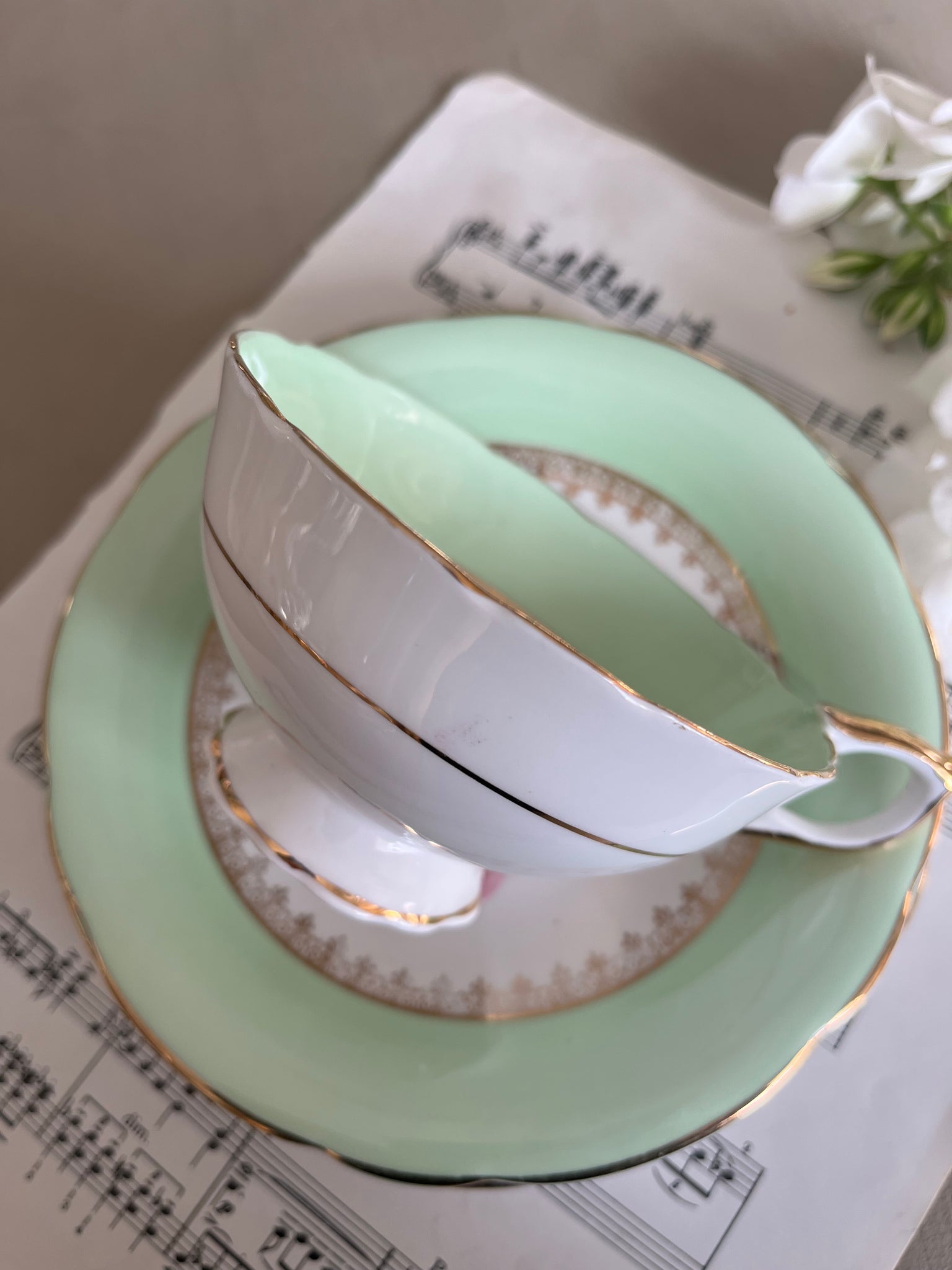 Imperial China vintage teacup trio with 22k gold detailing