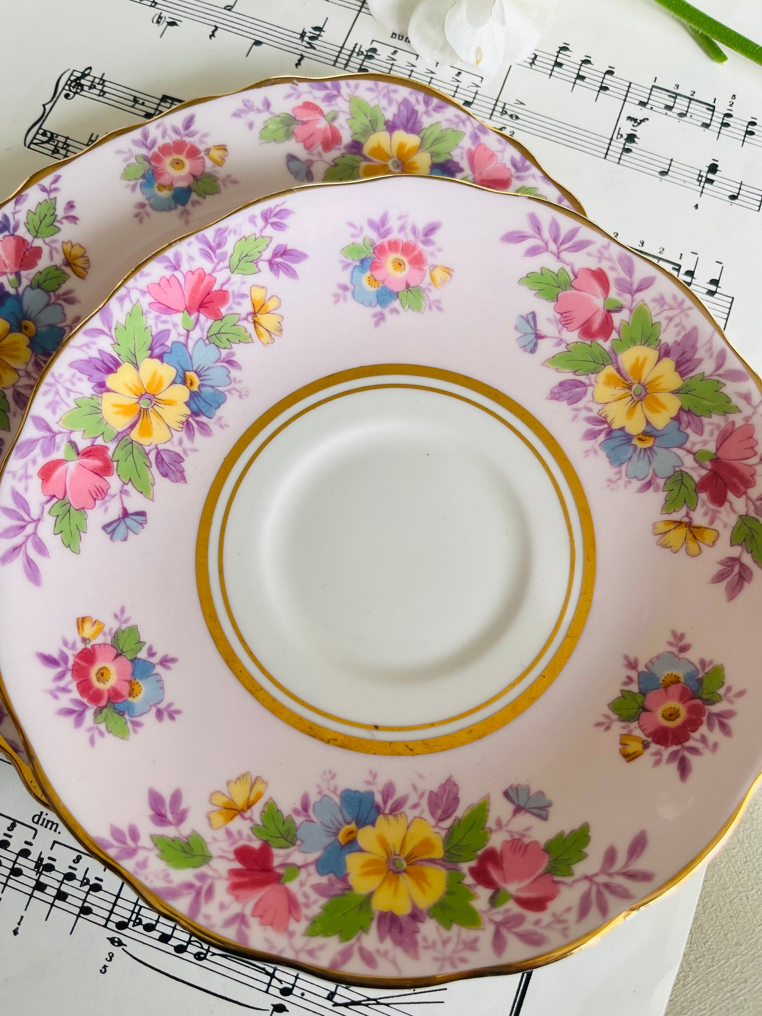 Pretty pink Colclough teacup trio 1940s