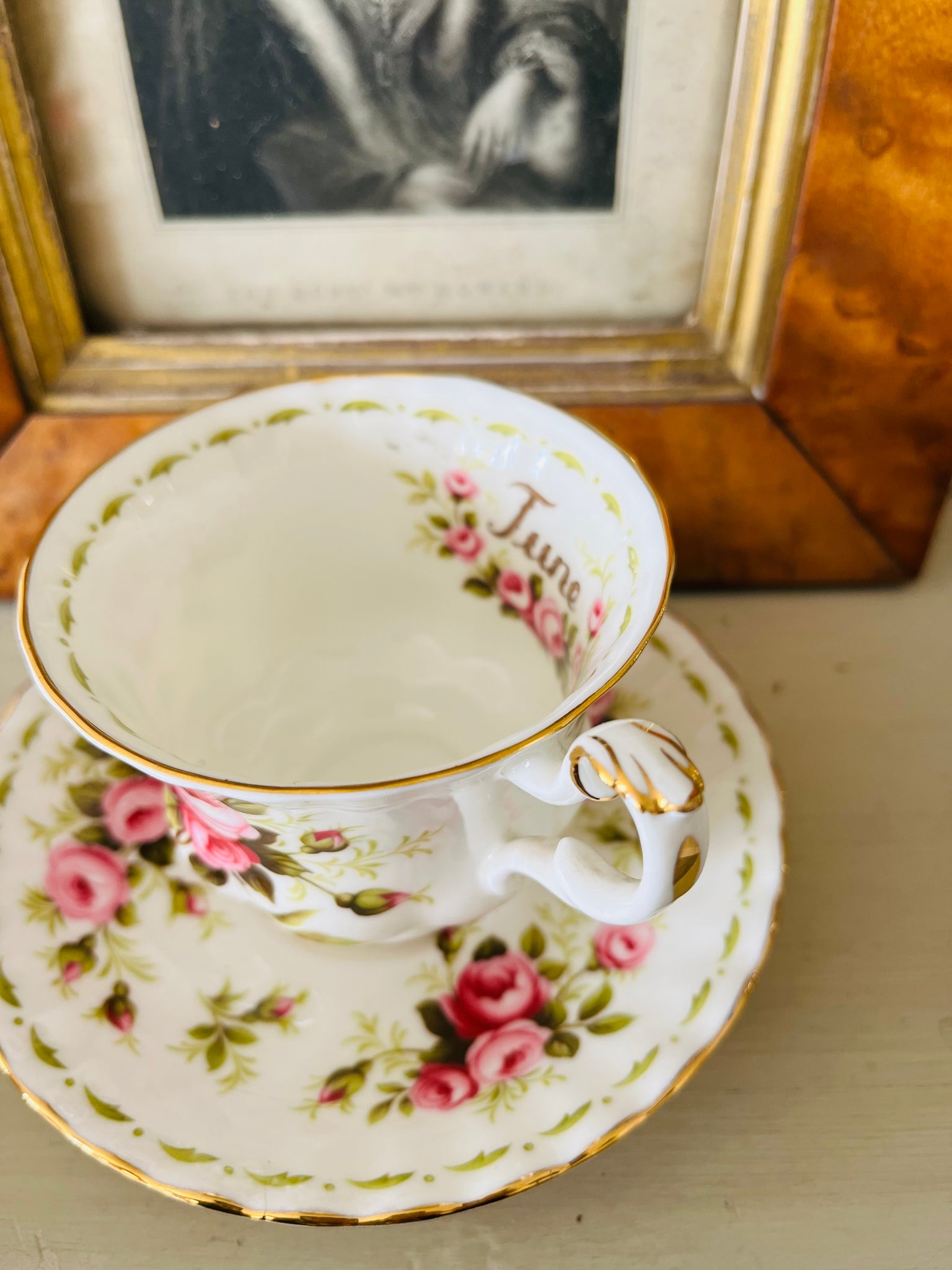 Royal Albert June flower of the month teacup and saucer set featuring the rose