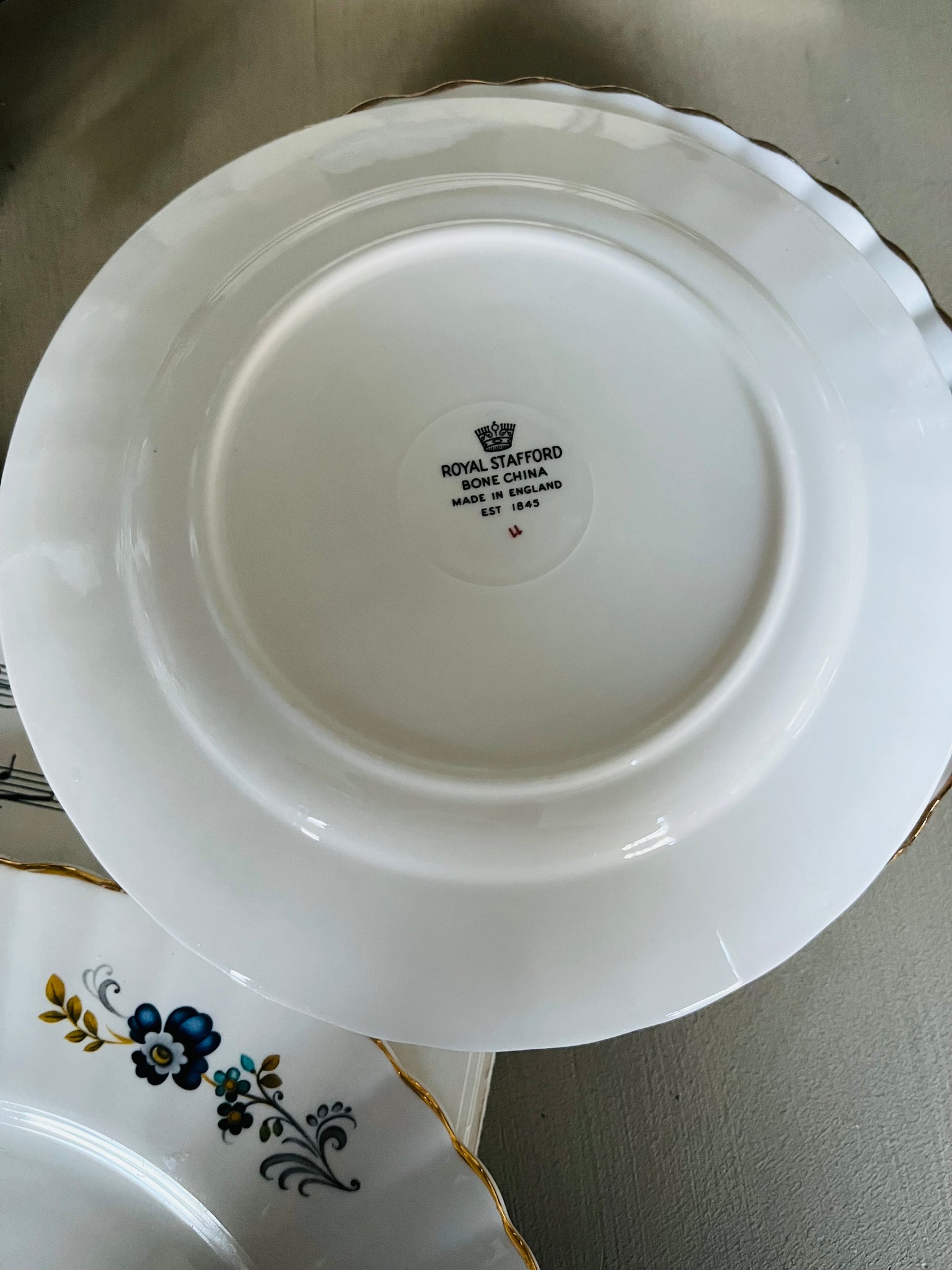 Set of 6 Royal Stafford vintage teaplates with matching cake plate