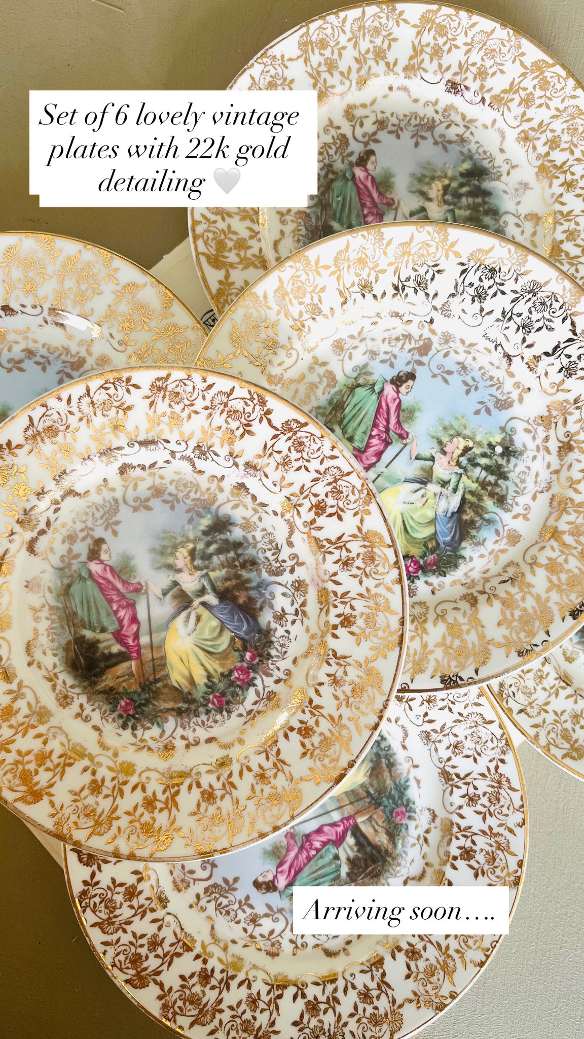 Set of 6 vintage teaplates with 22k gold detailing