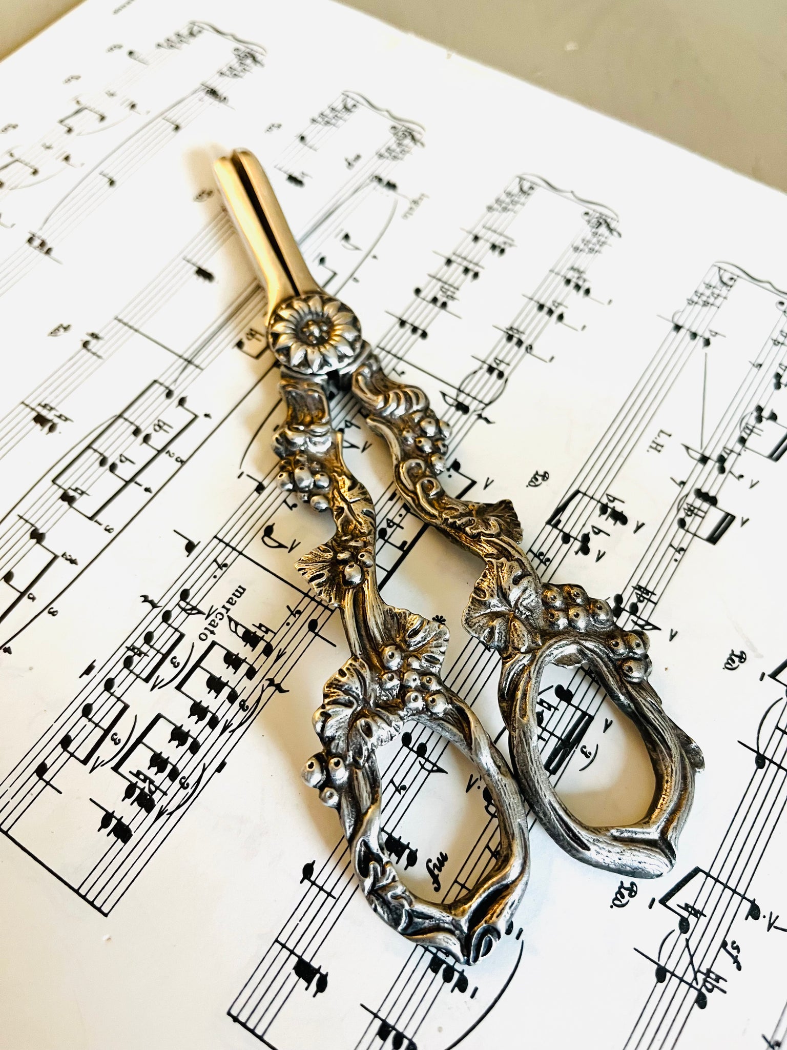 Set of vintage ornate silver plated grape scissors