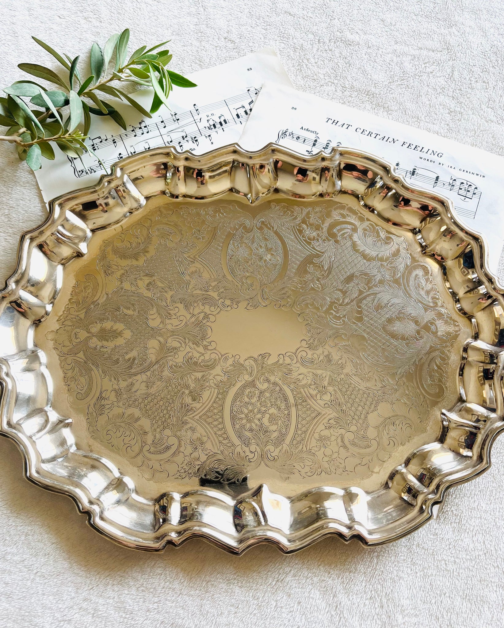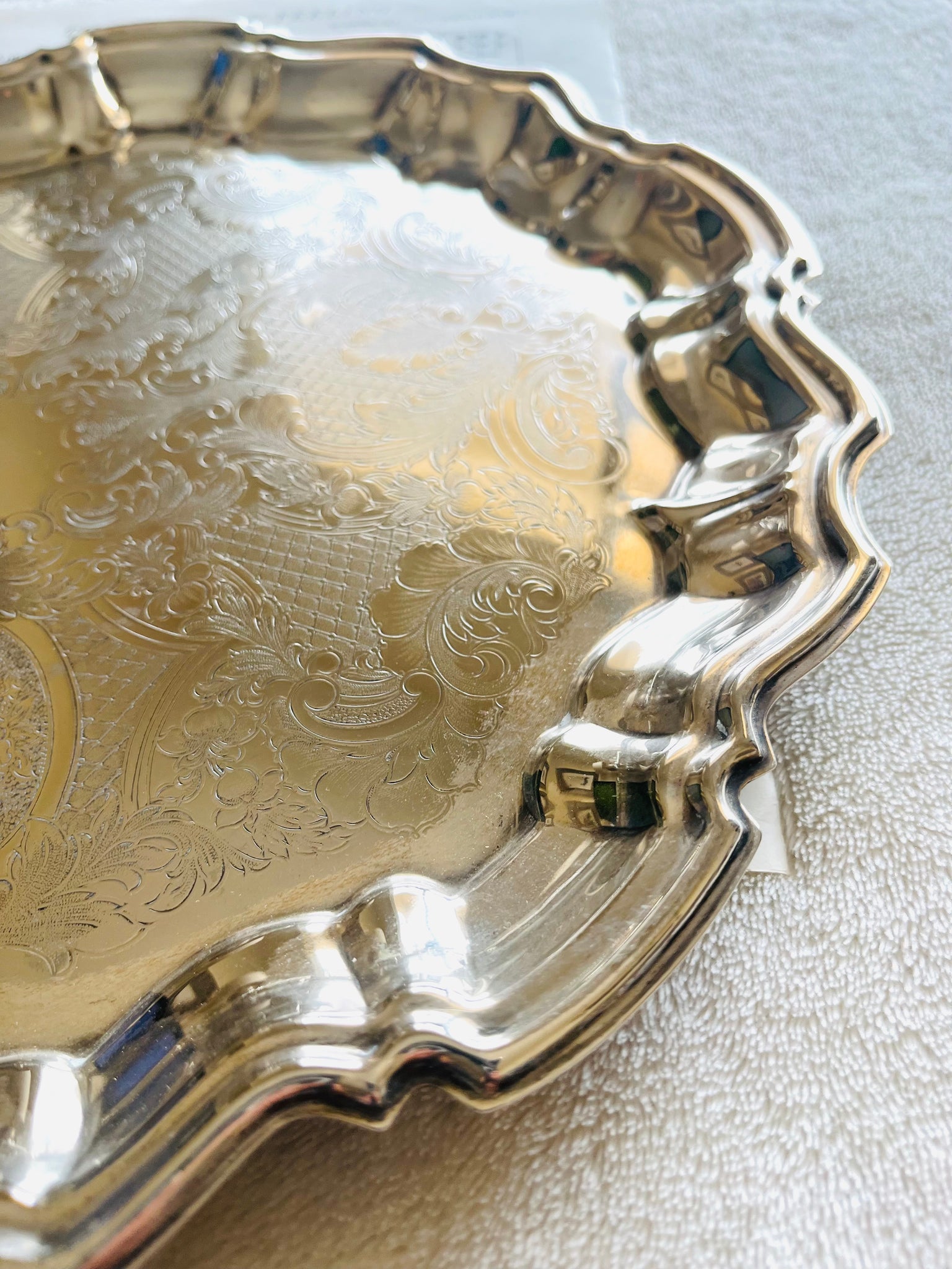 Silver plated engraved tray with fluted edges 36cm by 27cm