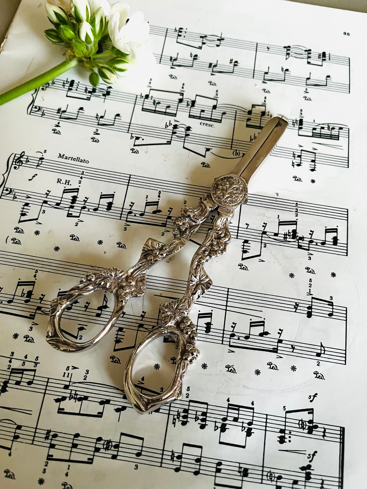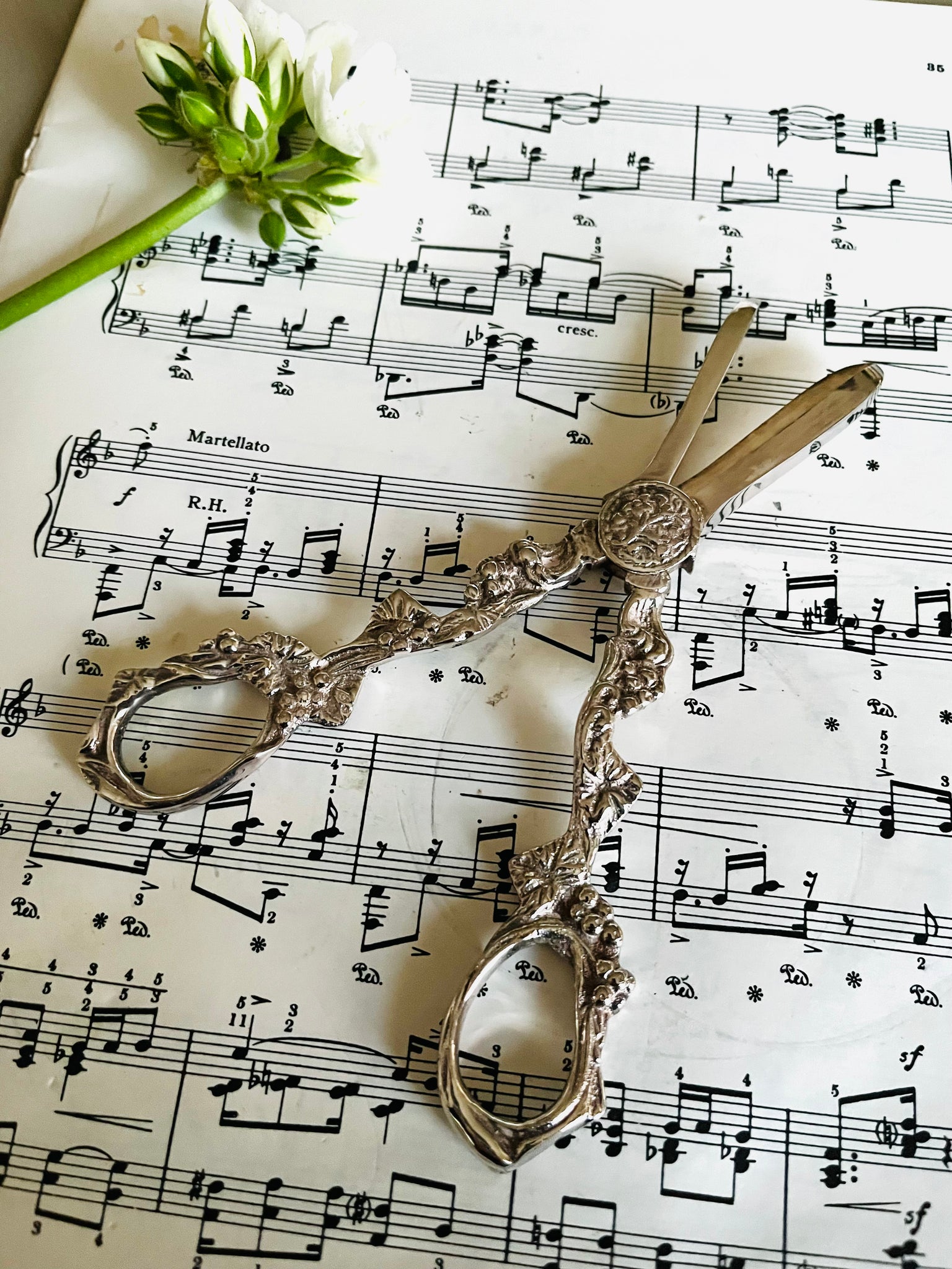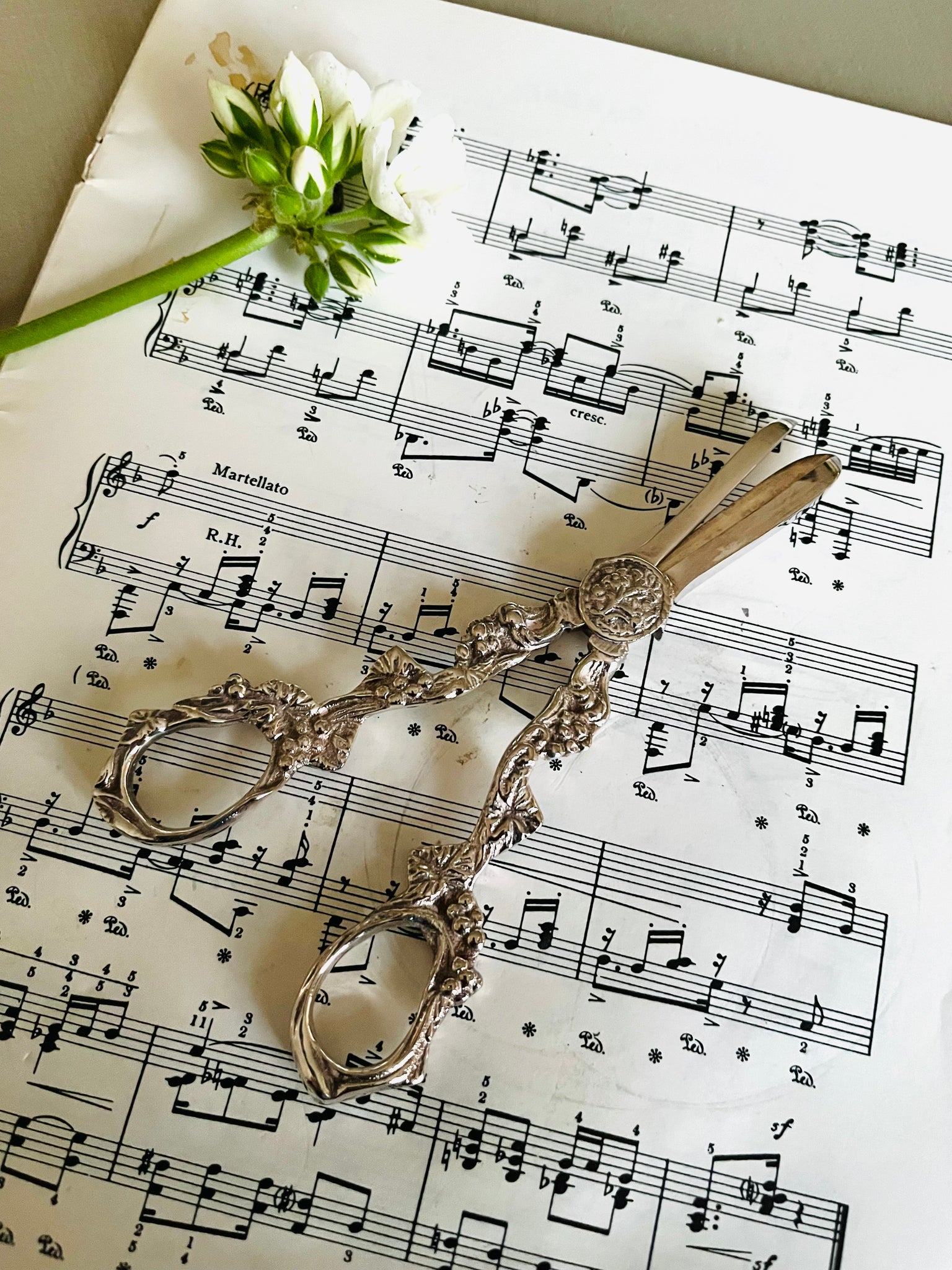 Silver plated ornate grape scissors