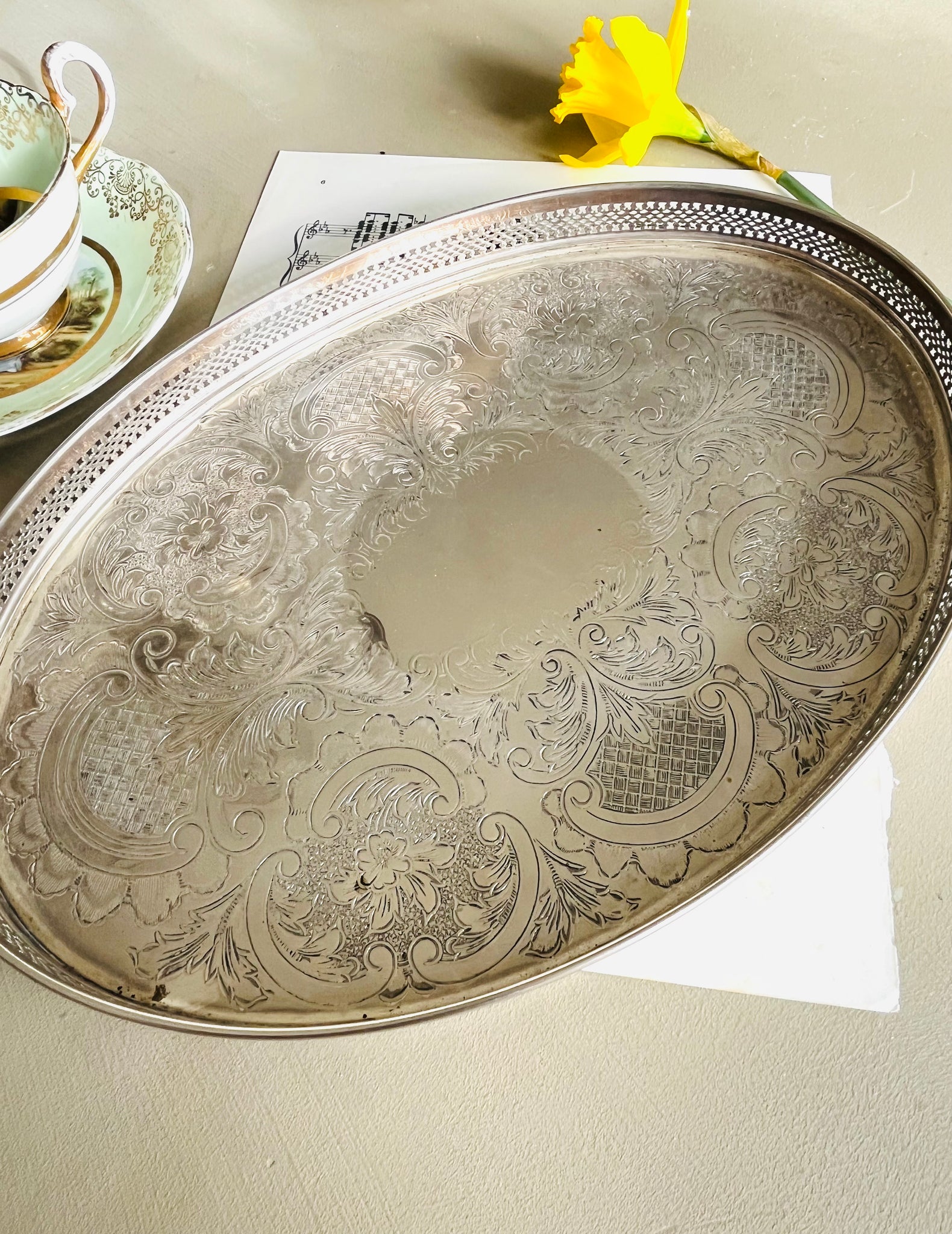 Silver plated vintage engraved tray Made in England 30cm by 22cm