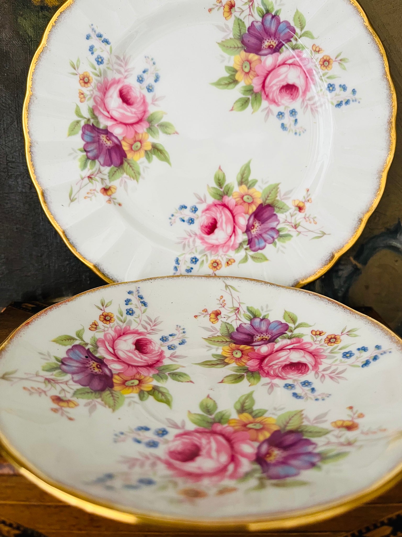 Vintage Queens china teacup trio
