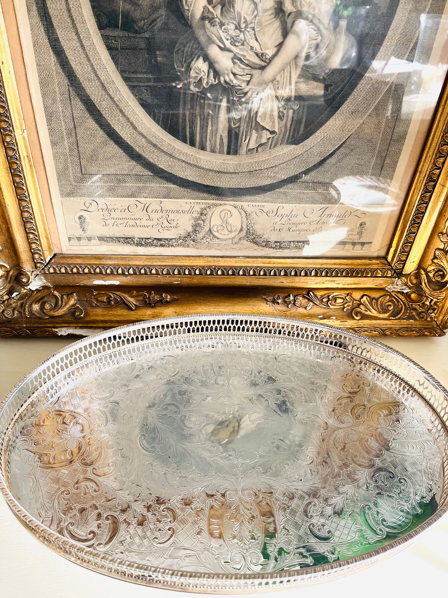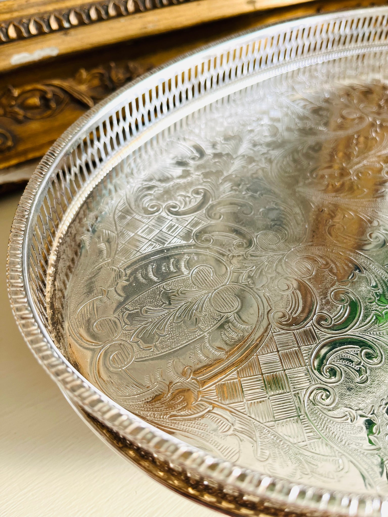 Vintage silver plated engraved tray 39cm by 24cm Made in Sheffield England