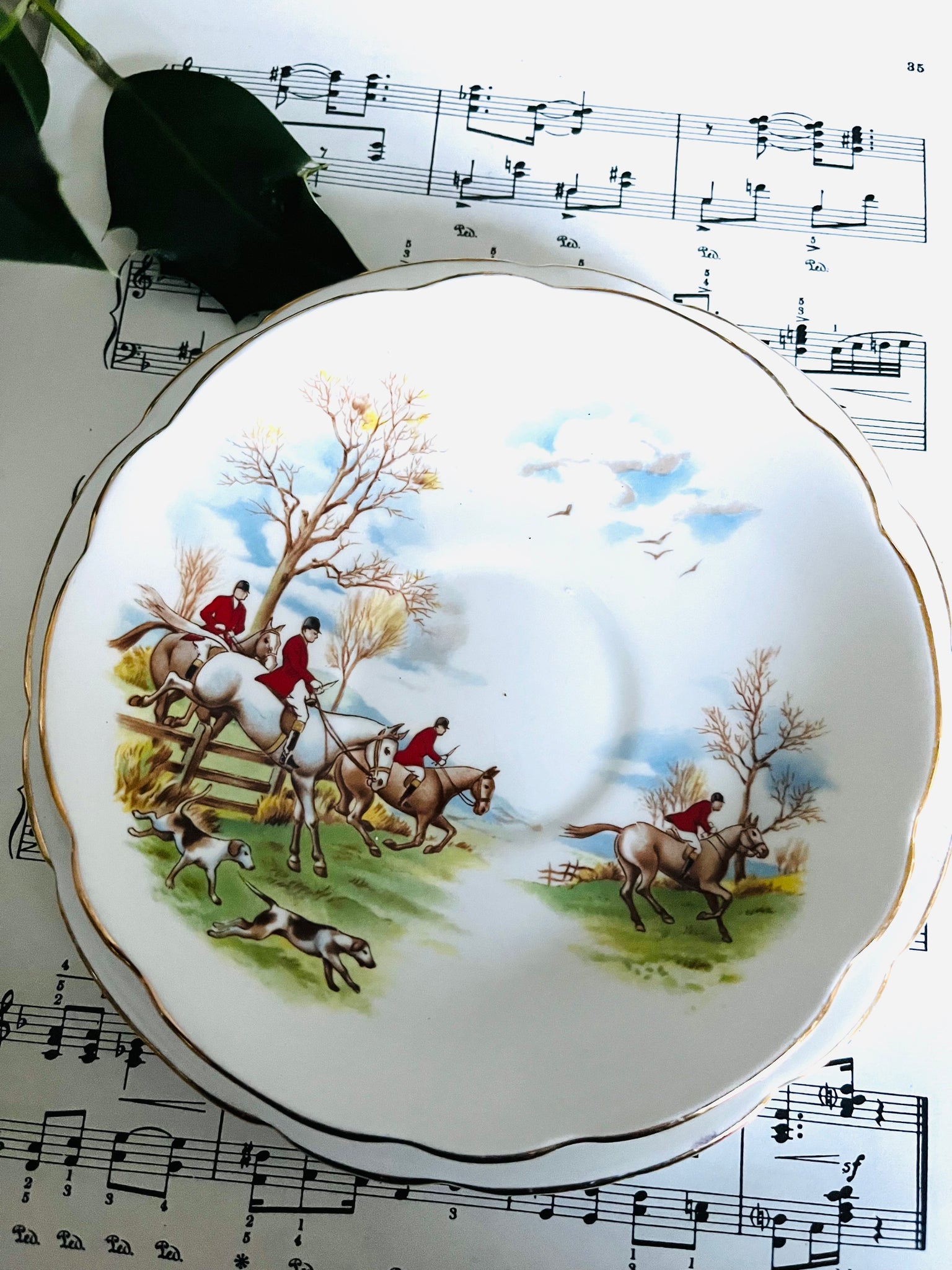 Vintage teacup trio by Grosvenor China ‘hunting scene’